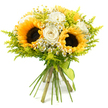 - Vibrant mix of sunflowers, roses, chamomile, and solidago